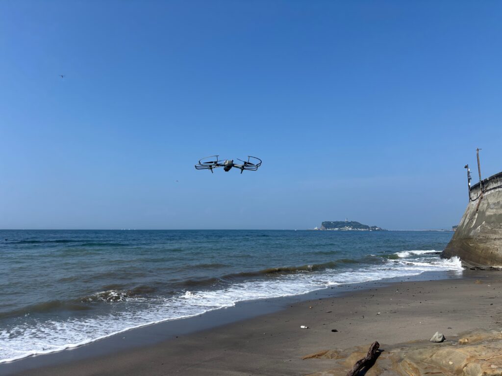 使用した機体は DJI AIR 3S。安定したホバリング性能とカメラ性能のおかげで、七里ヶ浜の広がる青い海と砂浜をしっかりと捉えることができました。