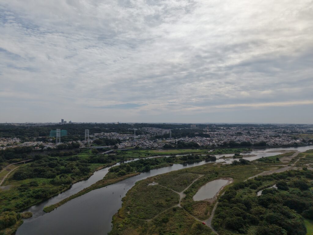 2025年10月3日の午前中、神奈川県厚木市近くにある相模川(上依知)でドローン空撮を行いました。