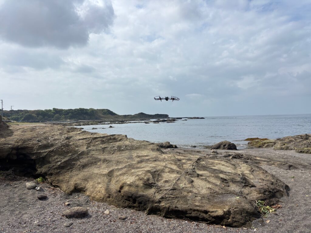 2026年4月13日の午前中、神奈川県三浦市にある「和田長浜海岸」にてドローン空撮を行いました。